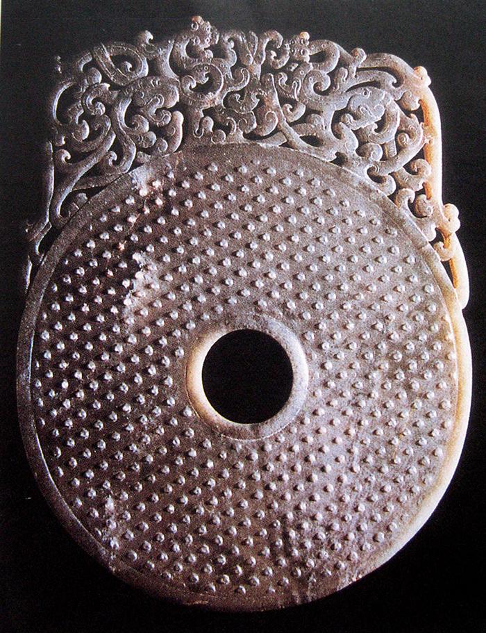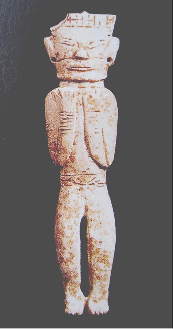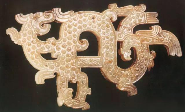 复合式是利用不同物象的局部进行复合,重新形成一种多元素为一体的会意图形,来表现某种超自然的形象,并以此来体现该形象的神性特征。如四川广汉三星堆遗址2号祭祀坑出土的人头鸟身像是鸟和人的复合形象(图1-15),安徽长丰杨公乡墓出土的镂空龙形佩则是龙和鸟的复合形象(图1-16),此外还有不同时期的龙图形、良渚文化神人兽面像、仰韶文化半坡彩陶人面鱼纹等,也均是此类多种物象复合的形象。这种把多种物象特征复合为一体的会意方式,意在创造人们心目中那些超自然的神灵或图形,并以此来表达其具有多种物象特征的神性涵义。