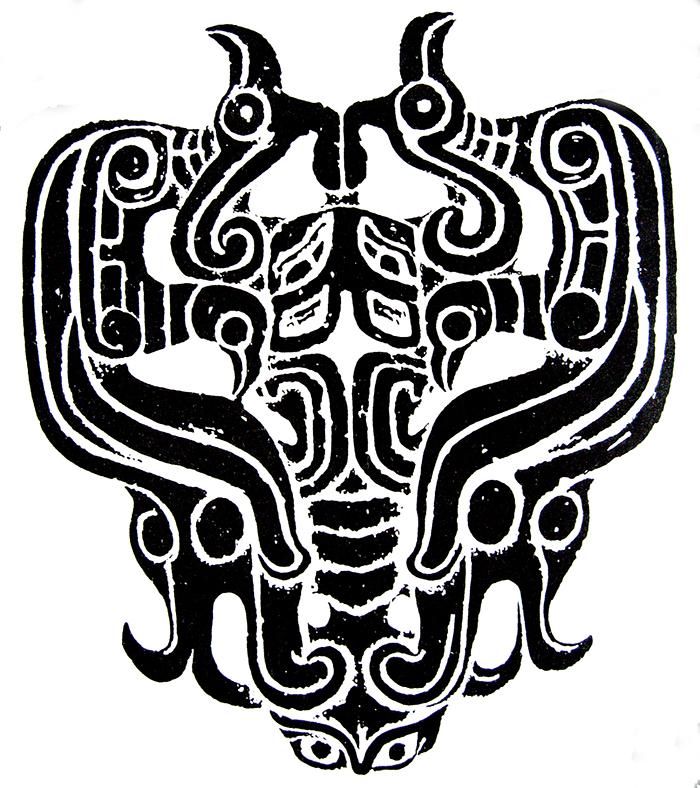在诸多的古文化“会意”图形中,其组合方式明显地表现出了当时的思维特征和社会观念,这种集符表意的组合方式有的以自然物象为造型依据,有的则是运用了超自然物象的象征性表达。因而在解读古文化图形的过程中,既要分析理解整体图式的内涵和造型方式,也要了解参与图形组合的纹饰或符号的象征涵义 ,对它们的辨识和解读是研究古文化图形极为重要的内容。